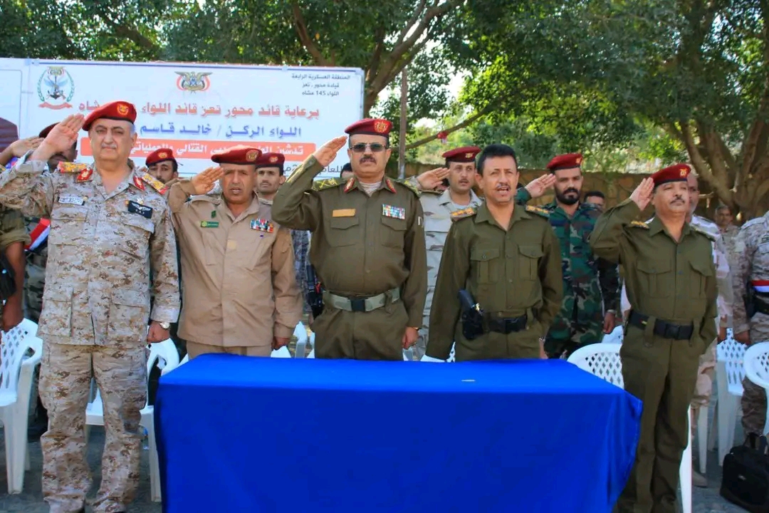 دشّن رئيس أركان محور تعز، اللواء عبدالعزيز المجيدي، اليوم، العام التدريبي القتالي والعملياتي والمعنوي 2026م، للواء 145 مشاة.