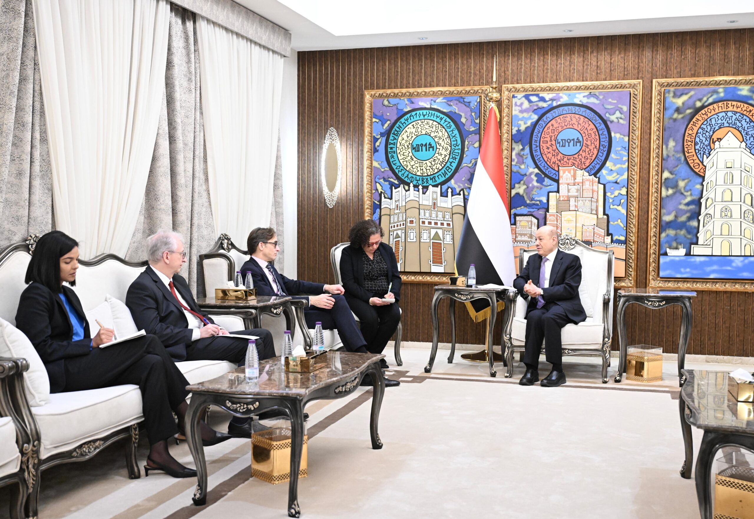 استقبل فخامة الرئيس الدكتور رشاد محمد العليمي، رئيس مجلس القيادة الرئاسي، اليوم الاثنين المفوض الخاص لوزارة الخارجية الألمانية لشؤون الشرق الاوسط والادنى وشمال افريقيا توبياس تونكل، وسفير جمهورية المانيا الاتحادية لدى اليمن توماس شنايدر.