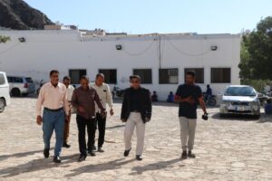 رافقه في النزول مدير مكتب التعليم الفني مديرية المكلا الأستاذ عمر خميس عصبان و مدير إدارة الاختبارات الأستاذ فريد عوض بن عبود الشيخ و مدير إدارة المناهج الأستاذ أنور عمر باعيسى ومديرة إدارة الإعلام الأستاذة هويدا سالم بن عروة والأستاذة شيماء بن عسله .