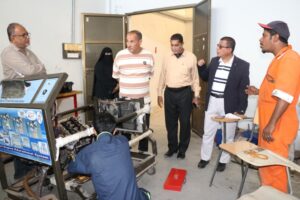 وكان في استقباله عمداء ومدراء المعاهد التقنية والمهنية ، حيث تم متابعة مستوى التنظيم والانضباط داخل قاعات الاختبارات وآلية التنفيذ ومدى الالتزام باللوائح والتعليمات المنظمة للعملية الاختبارية بما يضمن توفير أجواء مناسبة للطلاب أثناء تأدية اختباراتهم ، وقد بلغ عدد الطلاب المتقدمين للاختبارات العملية والنظرية 1408 طالباً وطالبة ، موزعين على عدد من التخصصات التقنية والمهنية .