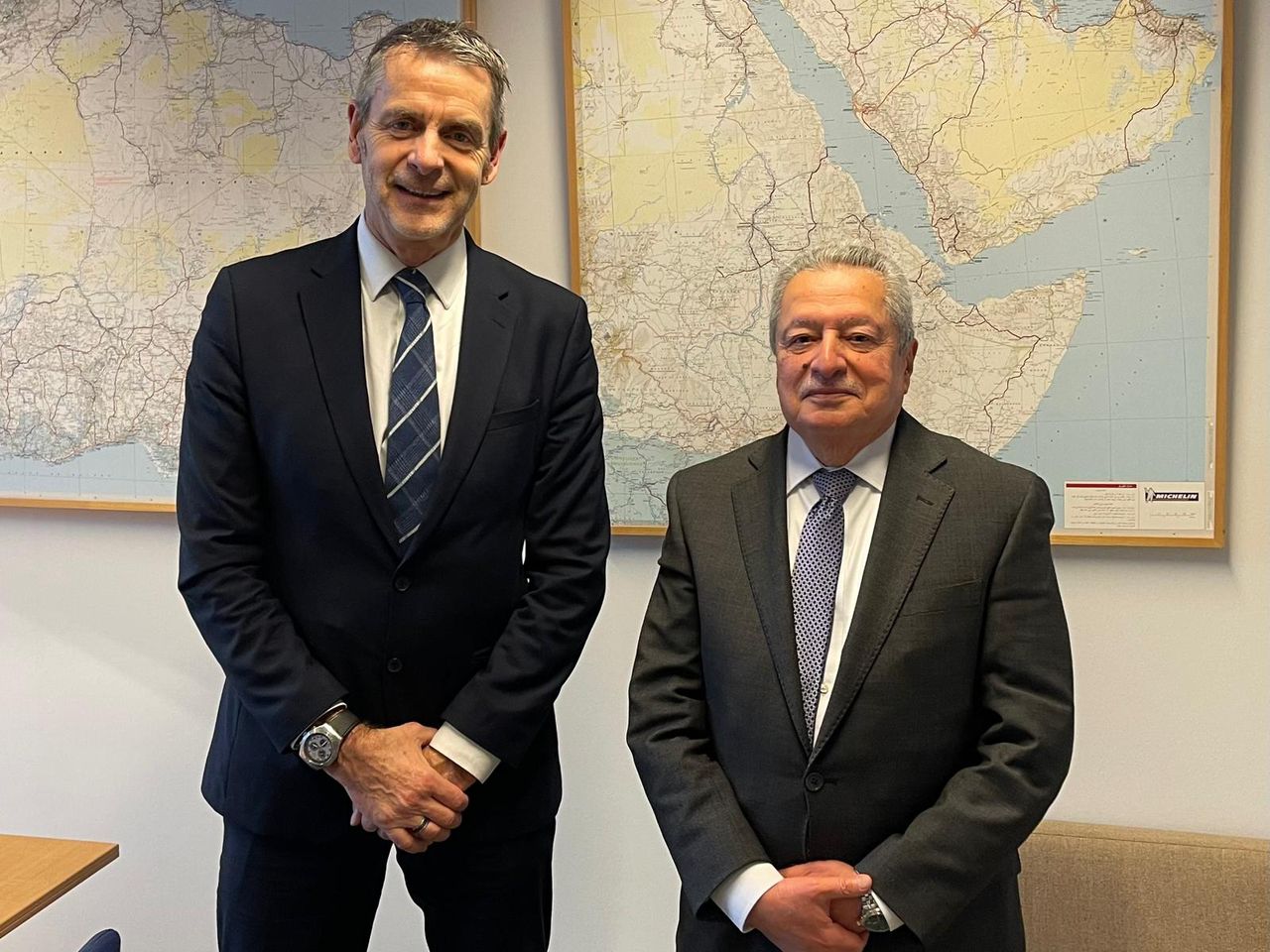 ناقش سفير اليمن لدى مملكة بلجيكا، محمد طه مصطفى، اليوم، مع مبعوث بلجيكا للشرق الأوسط، السفير يوهان فيركامن، تطورات الاوضاع في اليمن، وجهود مجلس القيادة الرئاسي بقيادة فخامة الرئيس الدكتور رشاد العليمي، للحفاظ على وحدة اليمن وأمنه واستقراره.