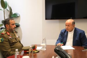 وخلال اللقاء، أشاد الأستاذ الخنبشي بالدور الوطني الذي تضطلع به القوات المسلحة بوزارة الدفاع، وبجهود توحيد العمل العسكري في سبيل استكمال تحرير العاصمة اليمنية صنعاء من مليشيات الحوثي الإرهابية، مؤكدًا أهمية مواصلة الجهود لإعادة بناء القوات المسلحة على أسس وطنية ومهنية.
