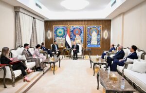 واكد فخامة الرئيس ان اليمن اليوم أقرب إلى التعافي مما كان عليه منذ سنوات، وان الدعم الدولي في هذه اللحظة سيصنع الفارق الاستراتيجي، لافتا الى ان استقرار اليمن مدخل حاسم لاستقرار المنطقة والممرات المائية.