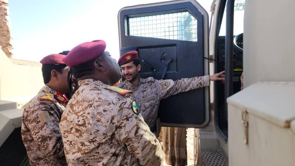 تفقد رئيس عمليات القيادة العامة لقوات حماية حضرموت، العميد الركن لطفي مهدي يادين، اليوم، جاهزية قوة الدعم اللوجستي بمعسكرها في منطقة نحب بمديرية غيل بن يمين، وذلك في زيارة ميدانية رافقه خلالها قائد اللواء الأول العميد الركن الجويد سالمين بارشيد، للاطلاع على مستوى الجاهزية القتالية والانضباط العسكري للقوة.