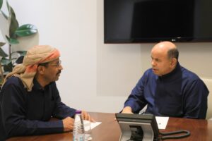 التقى عضو مجلس القيادة الرئاسي محافظ حضرموت الأستاذ سالم أحمد الخنبشي، اليوم، وزير النفط والمعادن الدكتور محمد عبد الله على بامقاء، في لقاء جرى خلاله بحث جملة من القضايا المتصلة بالقطاع النفطي والتمويني بالمحافظة.