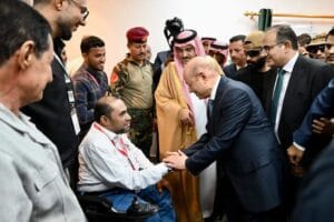 دشن فخامة الرئيس رشاد العليمي رئيس مجلس القيادة الرئاسي اليوم في العاصمة المؤقتة عدن حزمة من المشاريع والبرامج التنموية والحيوية التي ينفذها البرنامج السعودي لتنمية وإعمار اليمن، وذلك بحضور رئيس مجلس الوزراء الدكتور معين عبدالملك وسفير السعودية لدى بلادنا، المشرف العام على البرنامج محمد آل جابر .