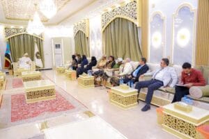 واستمع الرئيس القائد من الحاضرين إلى شرحٍ موجزٍ عن الأوضاع في أبين، وهموم أبناء المحافظة، بالإضافة إلى عدد من الإحاطات والملاحظات حول المشكلات التي تعاني منها المحافظة بشكل عام.