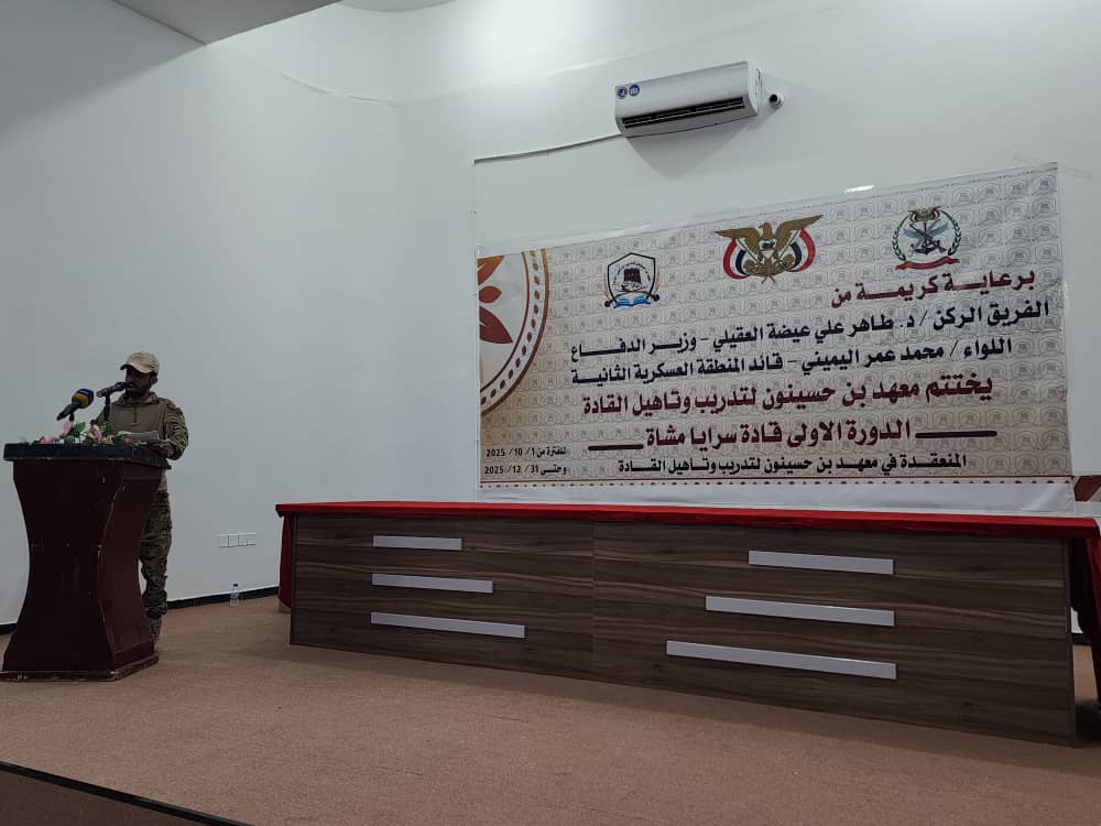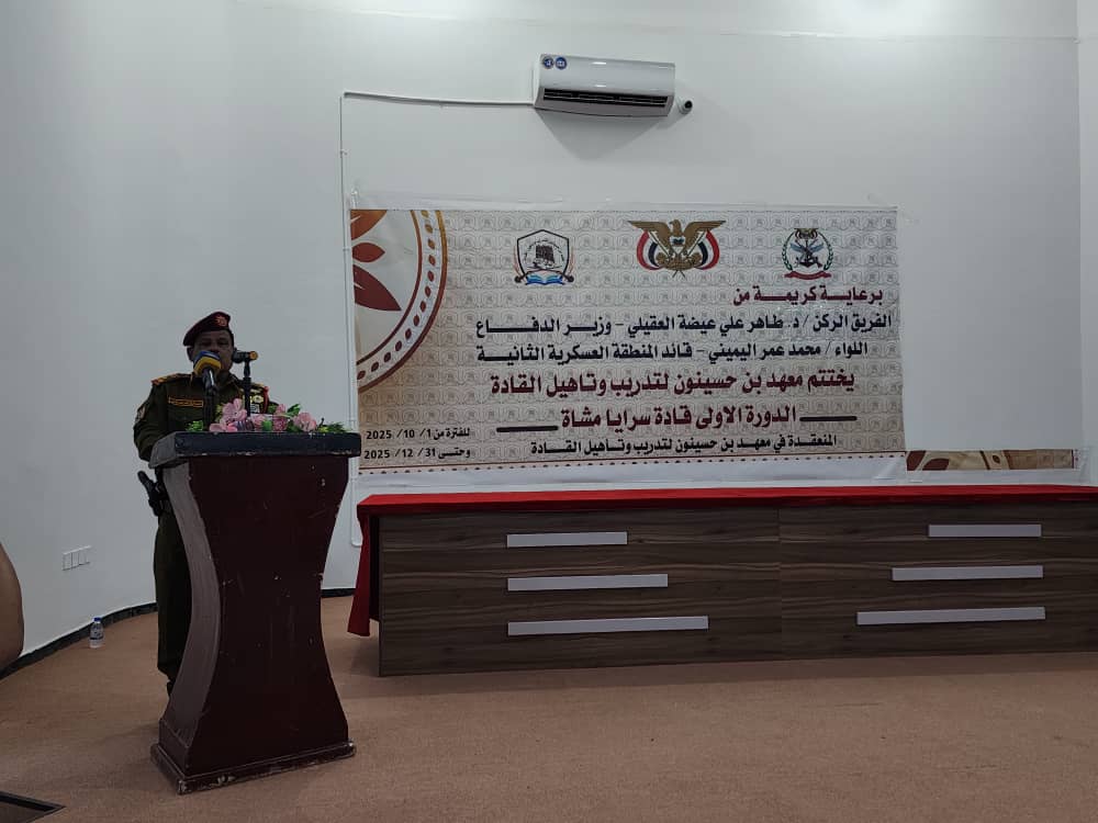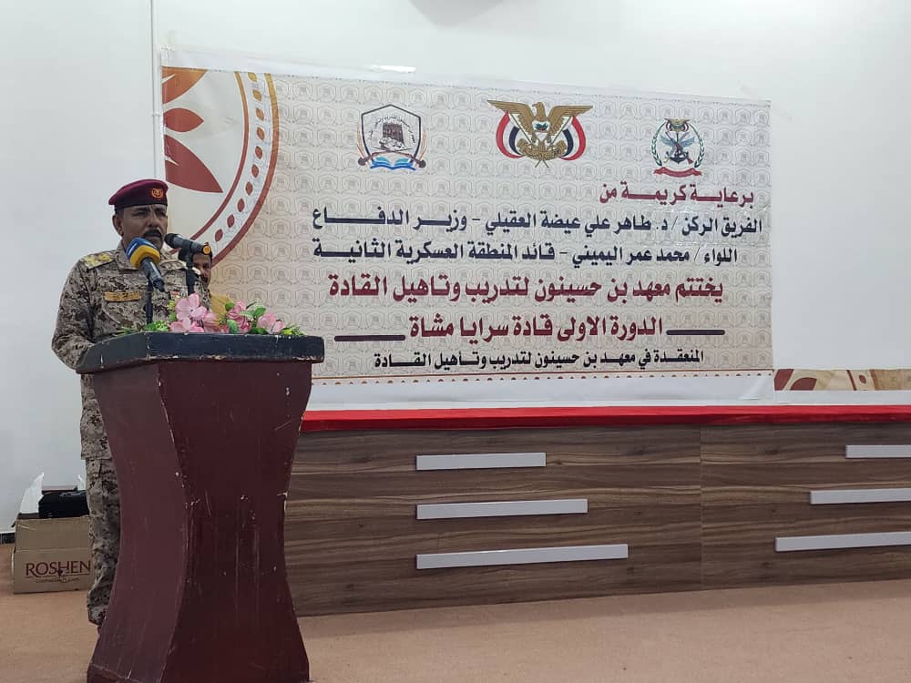 وخلال الحفل، ألقى قائد المنطقة العسكرية الثانية، اللواء محمد عمر اليميني، كلمة أشاد فيها بجهود إدارة المعهد وكوادره التعليمية، مثمّناً ما يبذلونه من عمل متواصل لتقديم برامج تدريبية نوعية ومتخصصة تسهم في تطوير قدرات ضباط المنطقة في مختلف العلوم والمعارف العسكرية، إلى جانب الدورات التأهيلية الهادفة إلى رفع الكفاءة المهنية.