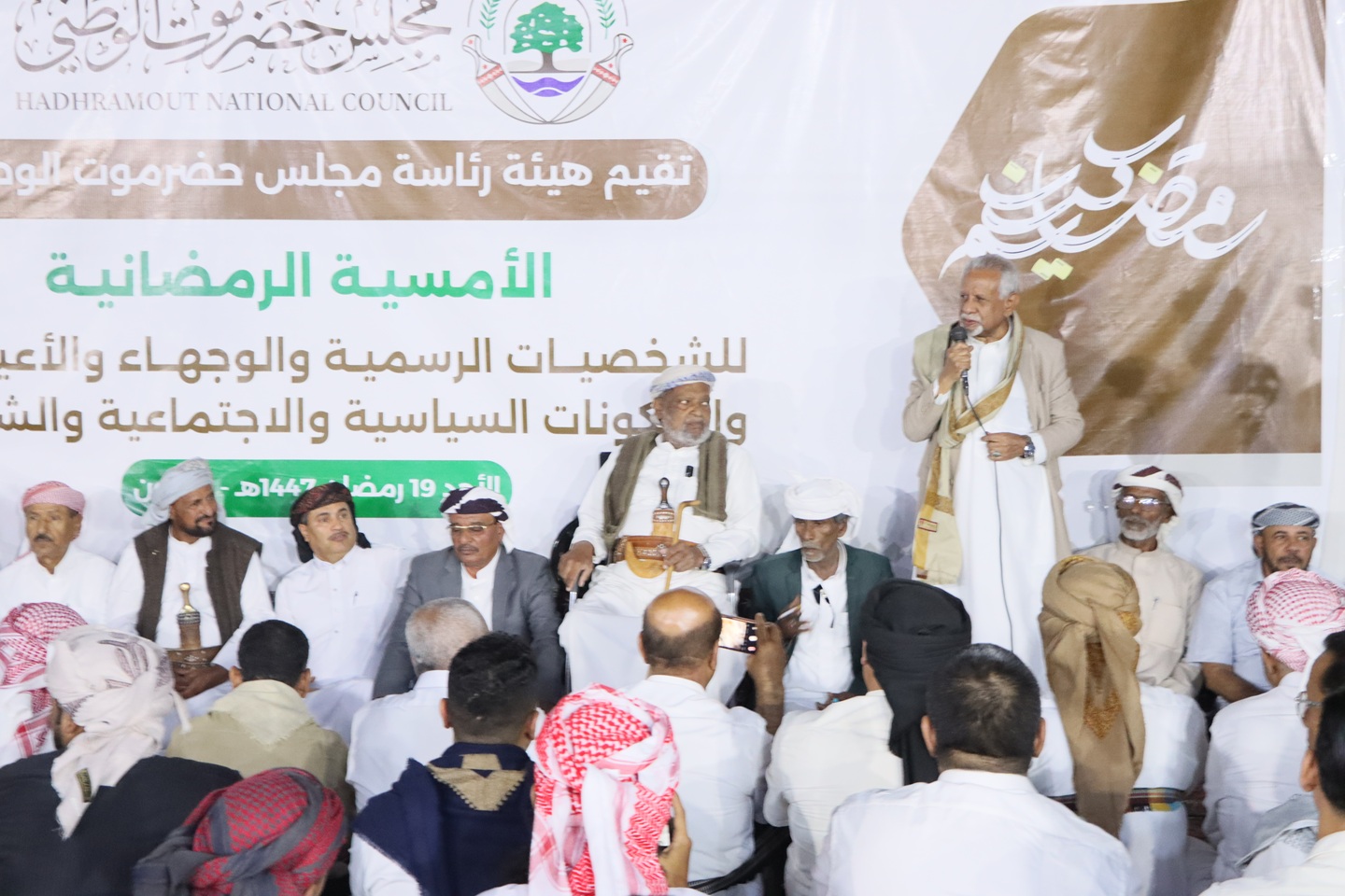 أقامت هيئة رئاسة مجلس حضرموت الوطني، بمقرها بمدينة سيئون، أمسية رمضانية موسعة بحضور عدد من أعضاء مجلسي النواب والشورى، ووكلاء الوزارات، وقيادة السلطة المحلية بالوادي والصحراء، وأعضاء السلطة القضائية، والمستشارين، ومدراء عموم المديريات وفروع الوزارات، والشيوخ والوجهاء، و ووفود قبائل الشريط الصحراوي وقيادات المكونات السياسية والمجتمعية والنقابية والشبابية.، والشخصيات الاجتماعي والوجهاء والاعيان بحضرموت الوادي والصحراء.