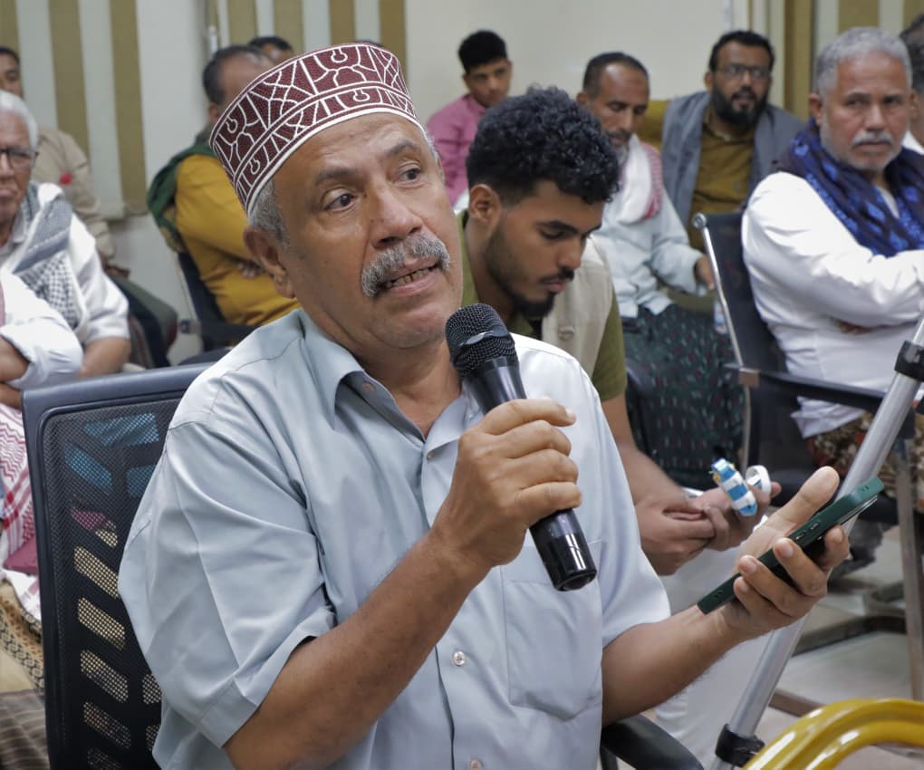 كما تطرقت المدخلات إلى الأوضاع الراهنة في حضرموت وأهمية تشارك القوى الفاعلة في تبني القضايا المجتمعية والمشكلات القائمة ، وطرحها على طاولة السلطات المختصة من أجل وضع الحلول الجذرية لها ، ومنها معالجة قضايا الصيادين والشرائح المهنية المتضررة ..