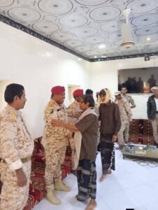 واستهل العميد الركن “يادين” جولته بزيارة عدد من الوجهاء والشخصيات الاجتماعية والقبلية في المديرية، من بينهم المنصب حسين علوي علي السقاف، وفضيلة القاضي عبدالرحمن حسن السقاف، والشيخ سالمين بن فرج العليي، والشيخ ناصر أحمد شذيان القرزي، وفضيلة الشيخ عبدالله أحمد العليي، حيث تبادل معهم التهاني بهذه المناسبة المباركة.