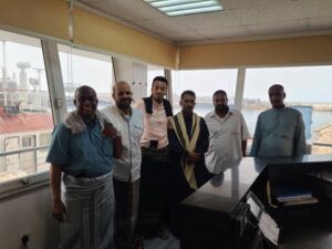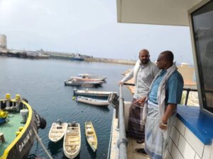 قــام الأستاذ فؤاد تيسير الرباكي، نائب الرئيس التنفيذي لمؤسسة موانئ البحر العربي اليمنية، صباح اليوم ثاني أيام عيد الفطر المبارك، بمعية الدكتور نبيل عبد الله بن عيفان مدير عام الهيئة العامة للشئون البحرية فرع المكلا، بزيارة تفقدية للإدارة البحرية بمؤسسة موانئ البحر العربي اليمنية (الكنترول)، للاطلاع على سير الأعمال الملاحية وحركة تشغيل السفن خلال إجازة عيد الفطر المبارك.