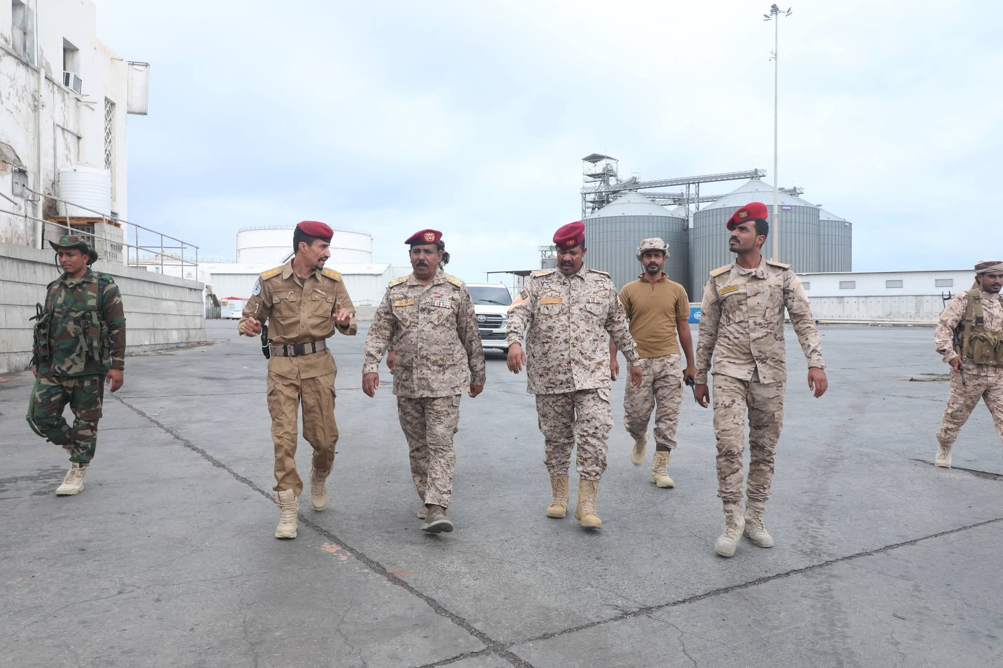 وقام قائد المنطقة العسكرية الثانية بجولة ميدانية شملت عدداً من الأقسام والمرافق داخل مقر القيادة، حيث اطّلع عن كثب على سير العمل اليومي، واستمع من الضباط المختصين إلى شروحات تفصيلية حول طبيعة المهام التي تضطلع بها الوحدات المختلفة، كما زار عدداً من المواقع الخارجية التابعة للقوة، وفي مقدمتها مواقع خفر السواحل في ميناء المكلا.