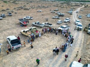 ورافق الشيخ محمد بن العميم العليي وفد كبير ضم عددًا من قيادات من المقاومة الشعبية وعلى رأسهم الشيخ عمرو سالم بن النعوم العبيدي، وعددًا من المقادمة والشخصيات الاجتماعية من أبناء مناطق وادي خرد. وكان في استقبال الوفد لدى وصولهم موقع العواد، الشيخ ناصر أحمد بن شديان القرزي، ومقادمة وأبناء قبيلة بيت القرزات.
