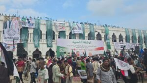 ورفع المشاركون شعارات ولافتات عبّرت عن الوفاء والعرفان للمملكة، مؤكدين تقديرهم لمواقفها الأخوية ودعمها المستمر لحضرموت في مختلف المراحل والظروف، مؤكدين دعمهم الكامل لدول الخليج، ومشددين على عمق الروابط الأخوية والمصير المشترك، وأشاد المشاركون بما تقدمه المملكة العربية السعودية من دعم مستمر لحضرموت في مختلف المجالات، خصوصاً في مشاريع البنية التحتية والخدمات الأساسية، التي أسهمت في تحسين مستوى المعيشة وتعزيز الاستقرار.