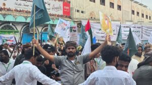 شهدت مدينة المكلا فعالية جماهيرية للتضامن مع المملكة العربية السعودية والدول العربية، والتنديد بالاعتداءات الإيرانية التي تستهدف أمن واستقرار المنطقة.