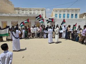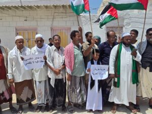 خلال الوقفة التي دعا لها رئيس اللجنة الأهلية بمدينة الحامي الأستاذ/ أحمد صالح بن طالب، عبر المشاركون في الوقفة عن استنكارهم الشديد لاعتماد الاحتلال الصهيوني لحكم الإعدام للأسرى الفلسطينيين الذين يتجاوز عددهم ١٠ ألف أسير بين طفل وشاب وامرأة ورجل.