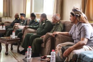 وضم الوفد المرافق كلًا من العقيد عبدالله عوض الدقيل مساعد المدير العام لشؤون الأمن، والعميد ركن عيسى سعيد العمودي مدير إدارة البحث الجنائي، والعقيد عبدالله ربيع بن شحنة مدير إدارة الرقابة والتفتيش، إضافة إلى العقيد أحمد بارشيد مدير إدارة السياحة، والمقدم عبدالله سعيد السعدي مدير مكتب المدير العام، والمقدم أنور صالح بارواعي مدير إدارة الشؤون المالية، والمقدم صلاح بن دويس نائب مدير شرطة السير.