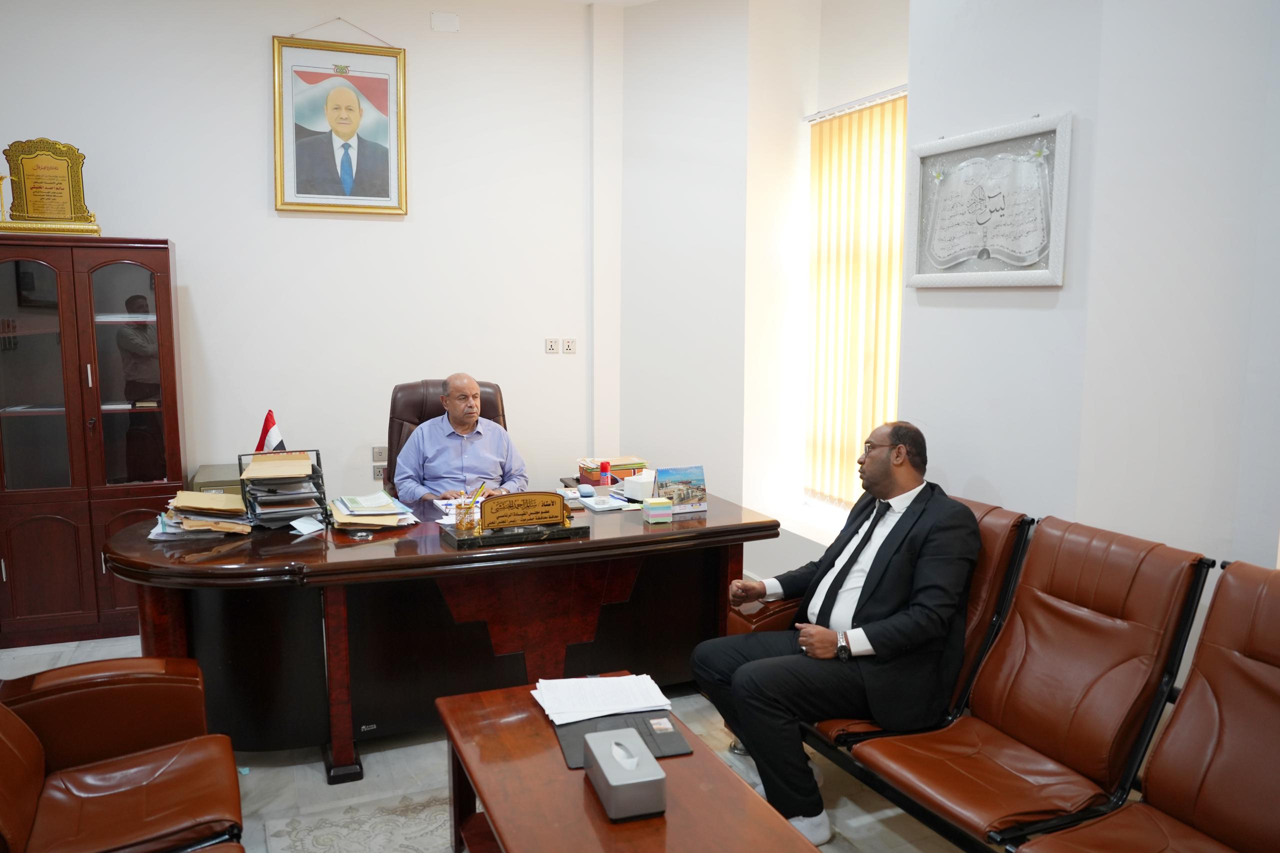 التقى عضو مجلس القيادة الرئاسي محافظ حضرموت الأستاذ سالم أحمد الخنبشي، اليوم بالمكلا، رئيس لجنة متضرري سيول 2008م القاضي خالد هويدي، في إطار متابعة أوضاع المتضررين وبحث سبل استكمال التعويضات المستحقة.