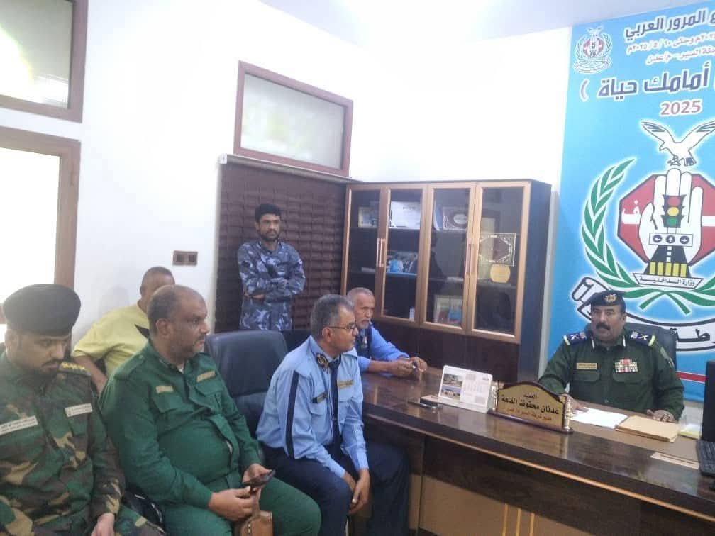 واستمع اللواء عاطف، من مدير إدارة شرطة السير بعدن، العميد عدنان قلعة، لشرح عن مستوى الأداء العام وخطط العمل الميدانية، والإجراءات المتخذة للحد من الاختناقات المرورية والحوادث، إلى جانب أبرز التحديات التي تواجه العمل وسبل معالجتها، خصوصاً مع قرب انطلاق فعاليات أسبوع المرور العربي خلال الفترة من 4 إلى 10 مايو 2026م.