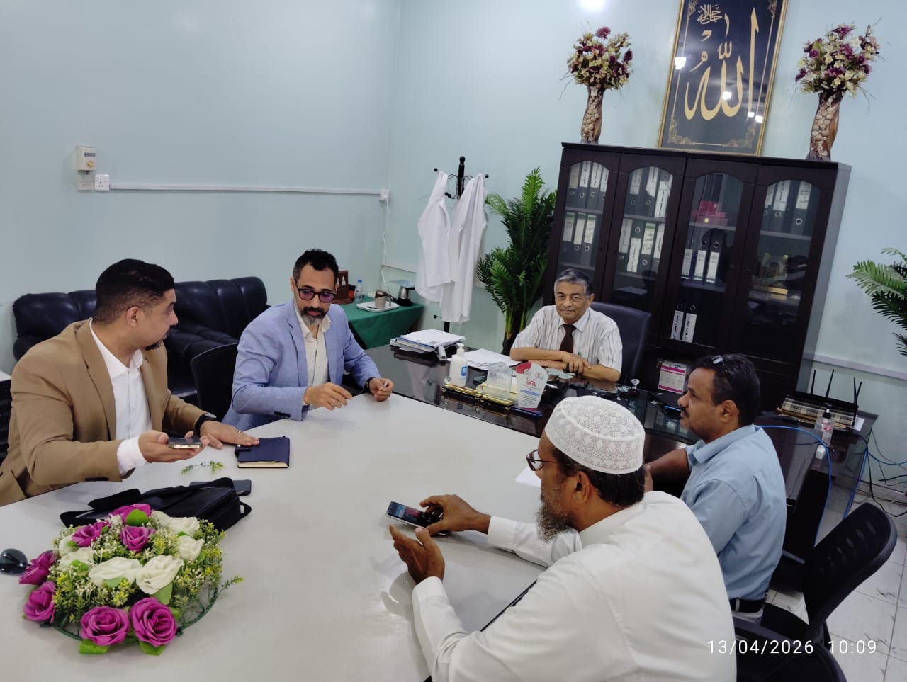 وفي اللقاء تعرف الوفد على ابرز المتطلبات والاحتياجات التي تحتاجها المستشفى وتكوين فكرة مبدئية حول احتياجات المشروع وتطلعات المجتمع المحلي .