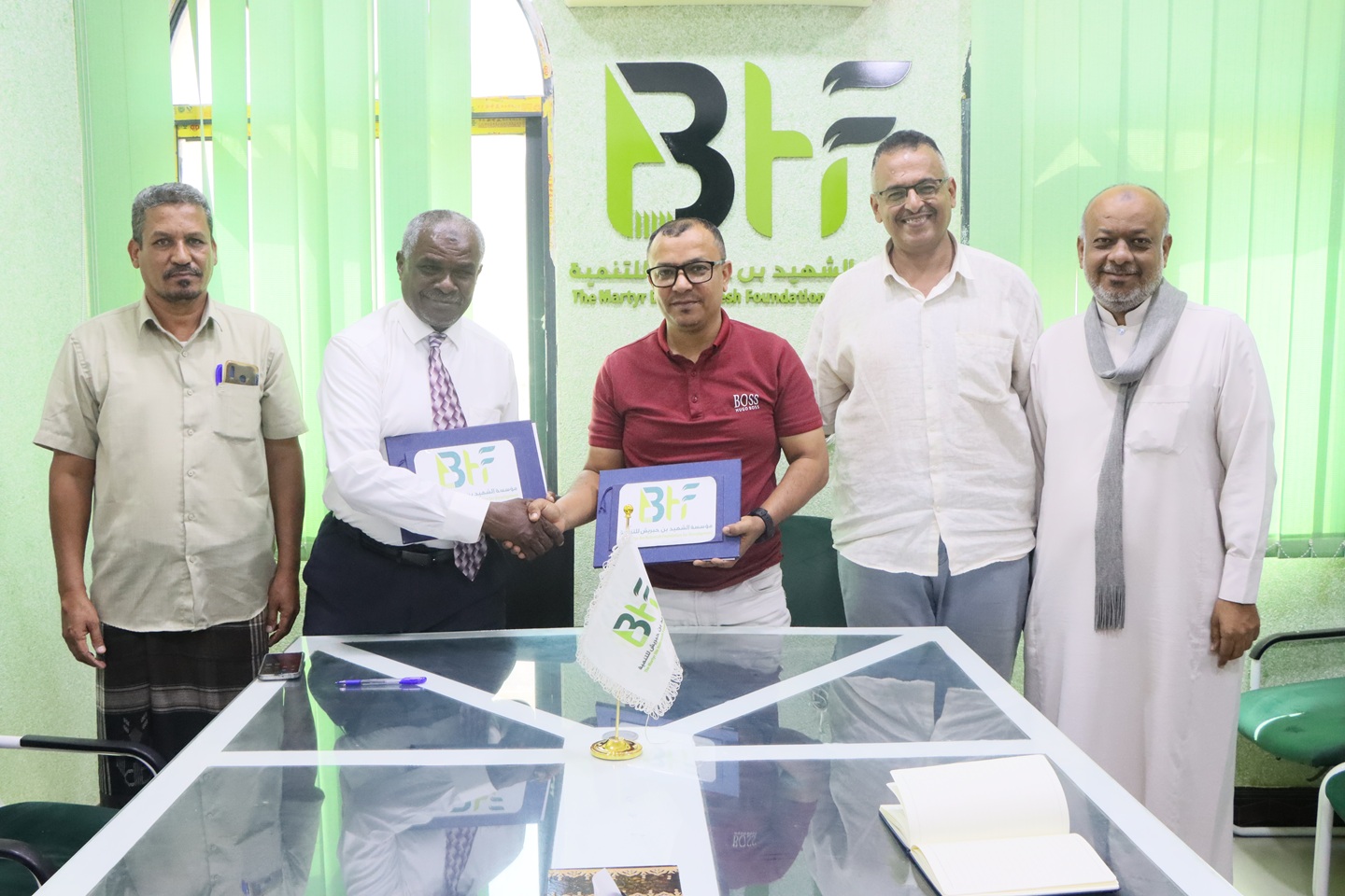 وخلال مراسيم توقيع المذكرة التي حضرها المسئول المالي بمؤسسة الشهيد بن حبريش الأستاذ زكي كرامة بن سعد وعضوي إدارة مؤسسة حضرموت للدراسات الإنسانية والاستراتيجية، تم التعريف بين المؤسستين والهدف الاسمى المشترك في خدمة الوطن والمجتمع والإسهام في التنمية..