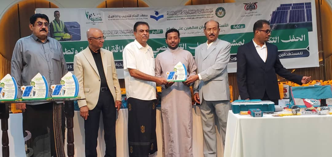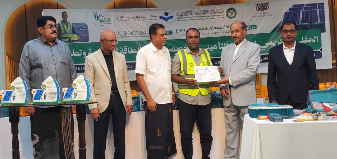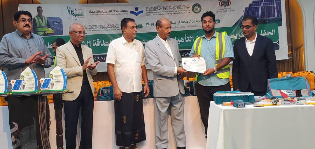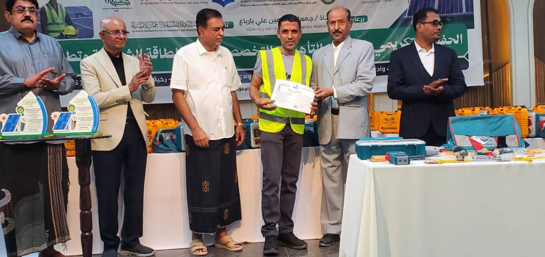 وأشار وكيل المحافظة، خلال كلمته في حفل اختتام مشروع التأهيل التخصصي في الطاقة الشمسية وتطبيقاتها بوادي حضرموت، الذي نفذته مؤسسة البادية للتنمية والأعمال الإنسانية، الى أن الاستثمار في تأهيل الكوادر المحلية في هذا المجال سيسهم في إيجاد حلول مستدامة وتحسين مستوى الخدمات، فضلاً عن خلق فرص عمل نوعية للشباب وتعزيز دورهم في عملية التنمية الشاملة.
