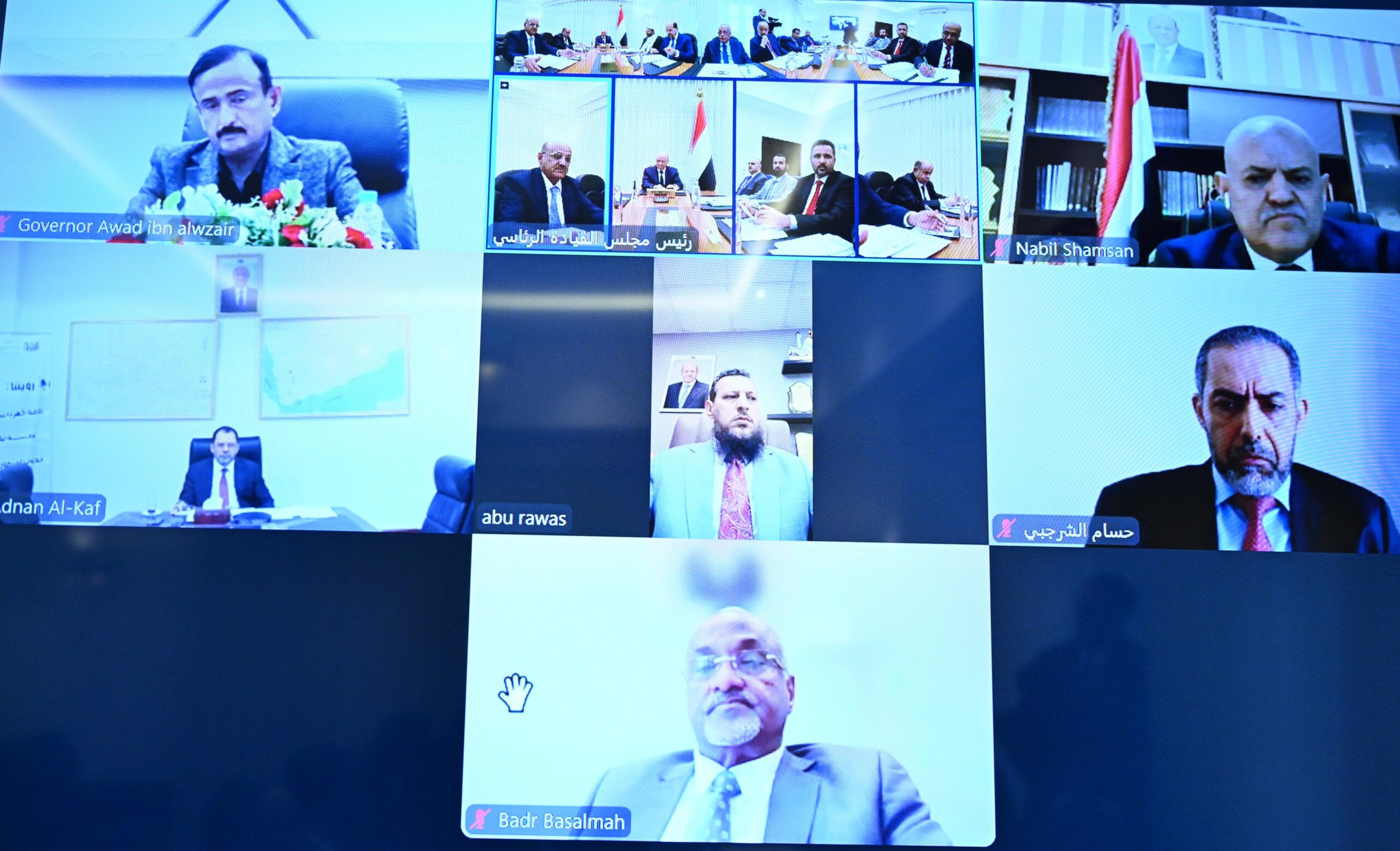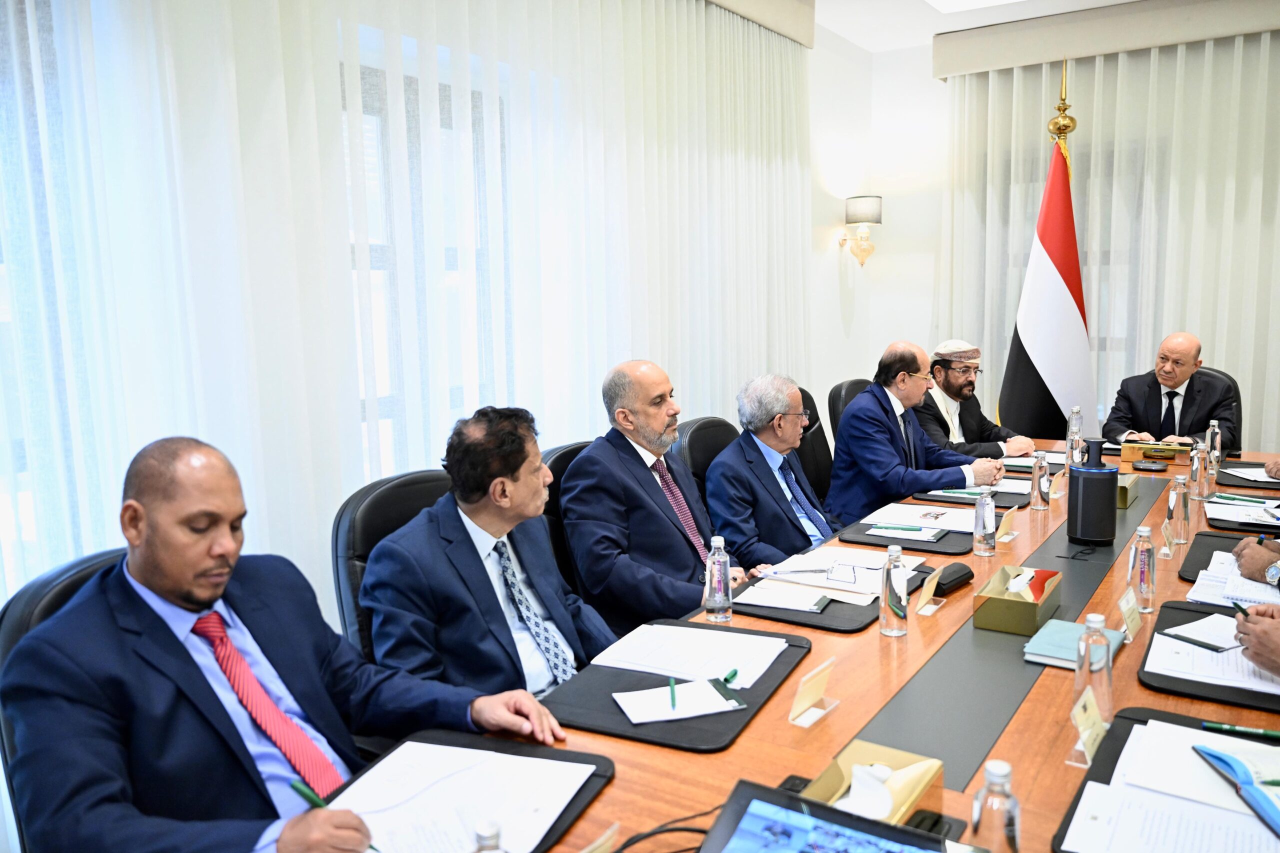 عقد فخامة الرئيس الدكتور رشاد محمد العليمي، رئيس مجلس القيادة الرئاسي اليوم الثلاثاء، اجتماعا مصغرا للحكومة، ومحافظي المحافظات المحررة بحضور عضوي المجلس سلطان العرادة محافظ محافظة مأرب، وسالم الخنبشي محافظ محافظة حضرموت، ورئيس مجلس الوزراء، وزير الخارجية وشؤون المغتربين الدكتور شائع الزنداني.