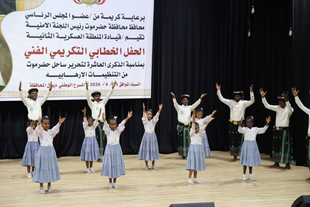 وتخلّل الحفل، الذي احتضنه مسرح حضرموت الوطني بالمكلا، باقة من الفقرات الخطابية والفنية المتنوعة، حيث أُلقيت كلمات رسمية لكل من وكيل المحافظة الأستاذ “الجيلاني”، وقائد المنطقة العسكرية الثانية اللواء “اليميني”، أكدت في مجملها الأهمية التاريخية لهذا اليوم الوطني، وما سطّره أبطال النخبة الحضرمية من ملاحم بطولية في سبيل استعادة الأمن والاستقرار وترسيخ دعائم السكينة العامة. كما شهد الحفل عروضاً فنية وشعرية بمشاركة نخبة من الفنانين والفرق المحلية، وسط تفاعل لافت من الحضور.