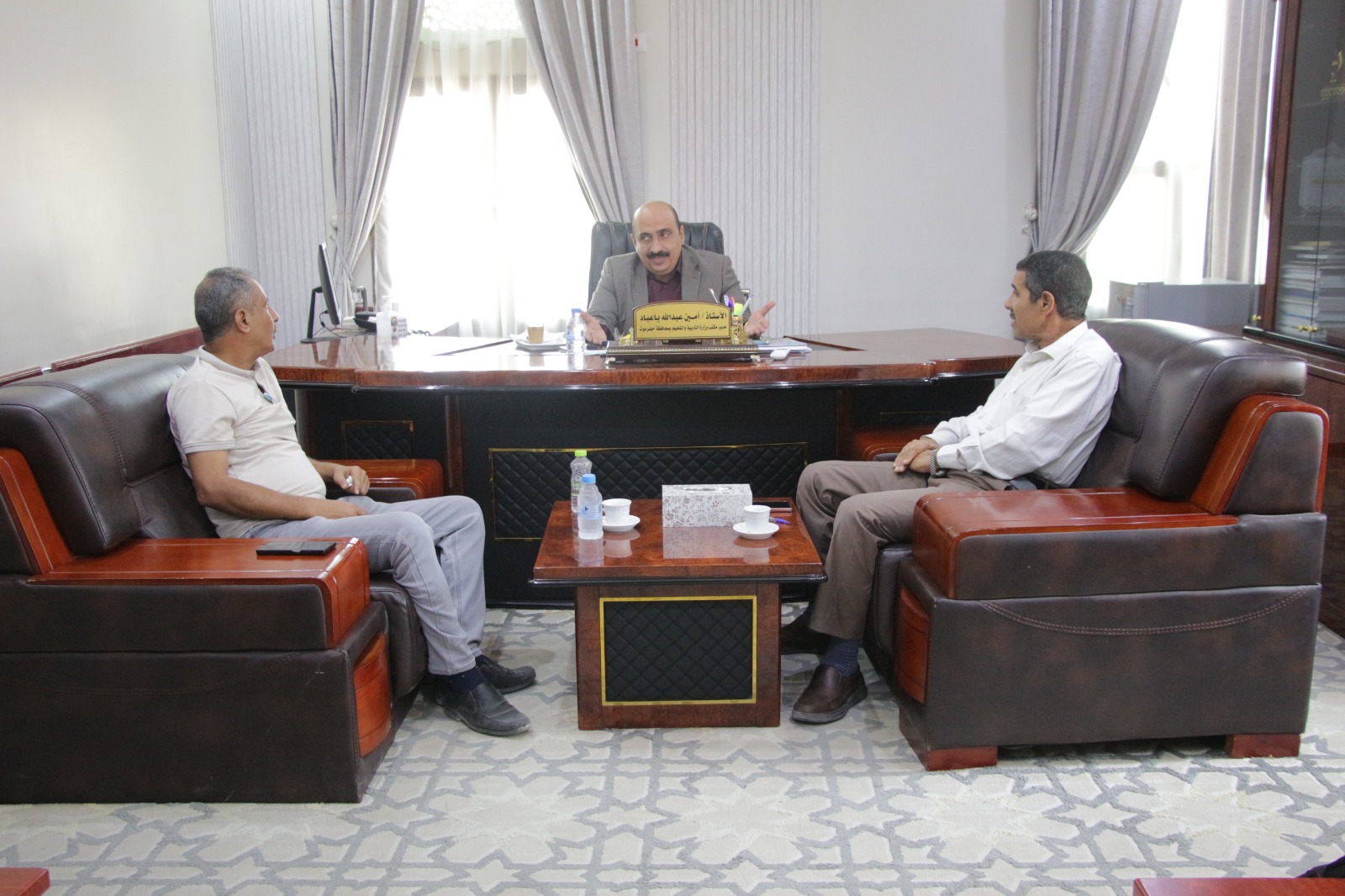 التقى الأستاذ أمين عبدالله باعباد، مدير مكتب وزارة التربية والتعليم بساحل حضرموت، بوفد فريق وزارة المياه والبيئة عبر الهيئة العامة لحماية البيئة فرع محافظة حضرموت – الساحل، برئاسة الأخ شوقي أحمد دعيس، المشرف على تنفيذ المشروع، والأخ علي عمر خان، مختص نقطة الاتصال بالمشروع.