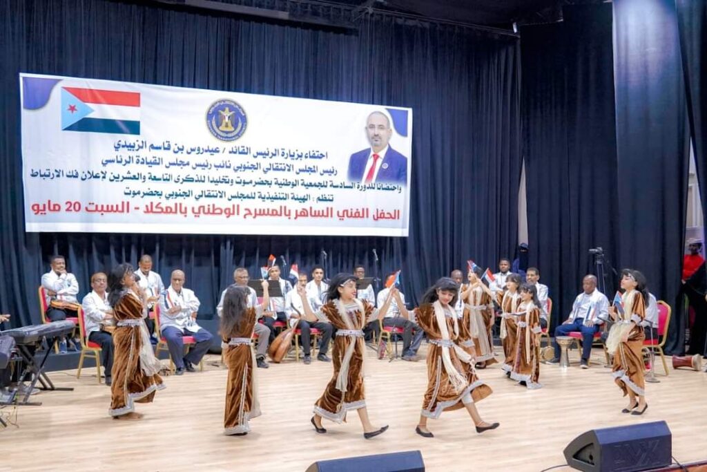 وقدمت خلال الحفل، الذي أقيم أيضا بمناسبة احتضان المكلا للدورة السادسة للجمعية الوطنية، باقة من أجمل الإغاني من كلمات وألحان الشاعر الكبير الراحل حسين أبوبكر المحضار، أداها الفنان الكبير محفوظ بن بريك، والفنانان الشابان عارف فرج سالم، وعدنان العطاس، بالإضافة إلى عدد من الوصلات الفنية المهداة للرئيس الزُبيدي احتفاءً بزيارته لمحافظة حضرموت، تراقص على انغامها عدد من زهرات المكلا، وفرق الرقص الشعبي.