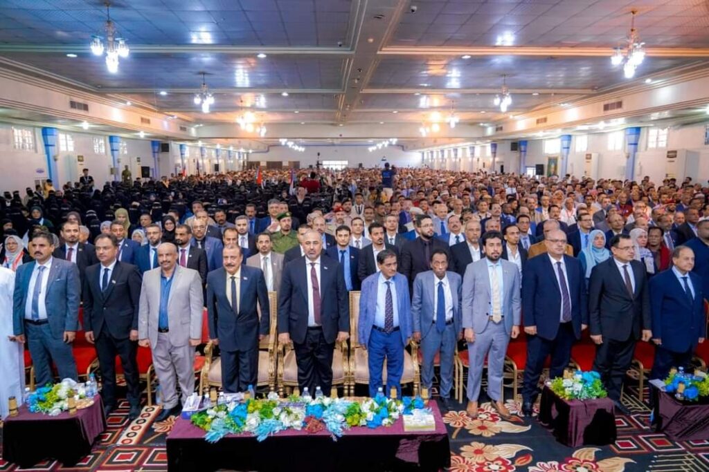 دشن الرئيس القائد عيدروس بن قاسم الزُبيدي، رئيس المجلس الانتقالي الجنوبي، نائب رئيس مجلس القيادة الرئاسي، اليوم الأحد، في محافظة حضرموت، أعمال الدورة السادسة للجمعية الوطنية للمجلس الانتقالي، تحت شعار “لتعزيز الشراكة مع القوى السياسية والمجتمعية والرموز الوطنية لاستعادة وبناء الدولة الجنوبية الفدرالية المستقلة” بحضور نائبيه، اللواء فرج البحسني نائب رئيس مجلس القيادة الرئاسي، واللواء أحمد بن بريك رئيس الجمعية الوطنية.