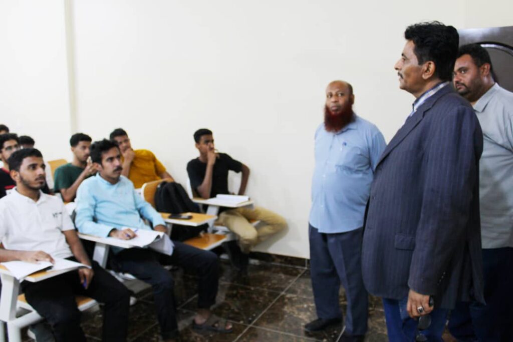 كان ذلك خلال زيارة قام بها صباح اليوم إلتقى فيها بأمين مجمع الكليات بالجامعة الأستاذ صبري بارماده ومدير إدارة الجودة بكليات الجامعة رئيس قسم تقنية المعلومات الدكتور مازن باحشوان وعميد كلية الهندسة وتقنية المعلومات الدكتور صالح سالم بامؤمن و عميد كلية العلوم الإدارية الدكتور حسن بن غانم، طاف فيها بكليات الجامعة المختلفة، متعرفا على سير العملية التعليمية، مشيدا بالدور الرائد الذي تلعبه الجامعة في الدفع بالتعليم قدما بما يتواكب مع تطور التعليم، مثمنا الجهود التي تبذلها الجامعة في سبيل النهوض بمستوى التعليم.