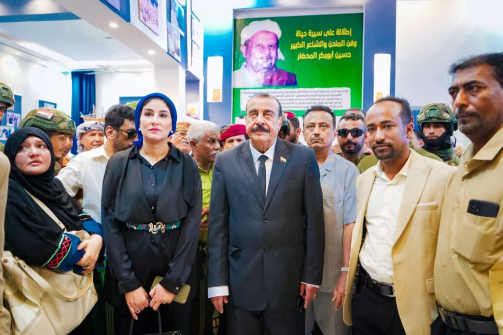 وطاف اللواء بن بريك بأروقة المتحف، وتعرف من خلال تسجيل مصور، على تاريخ الشاعر الراحل المحضار، الذي صنع تحولا كبيرا في فن الأغنية الحضرمية، والخليجية والعربية بشكل عام.
