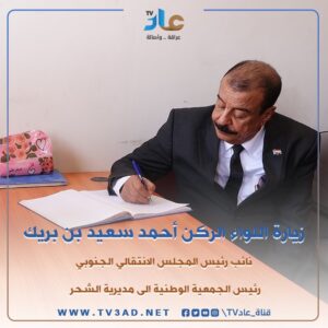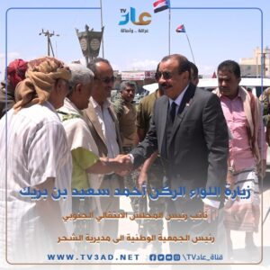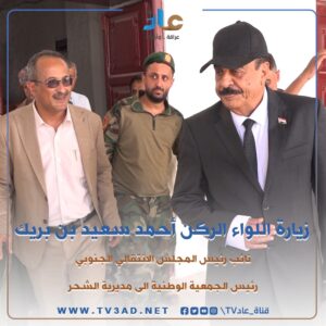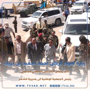 قام اللواء الركن أحمد سعيد بن بريك نائب رئيس المجلس الانتقالي الجنوبي، رئيس الجمعية الوطنية، محافظ حضرموت الاسبق بجولة تفقدية في مديرية الشحر العريقة بمحافظة حضرموت.