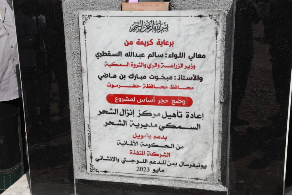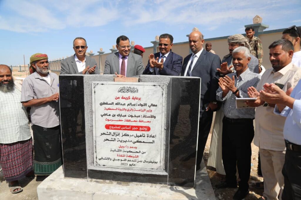 وضع وزير الزراعة والري والثروة السمكية اللواء سالم عبدالله السقطري صباح اليوم الأربعاء بمدينة الشحر حجر الأساس لمشروع إعادة تأهيل مركز إنزال الشحر السمكي بمعية الأمين العام للمجلس المحلي بحضرموت، الأستاذ صالح عبود العمقي ووكيل المحافظة للشؤون الفنية المهندس أمين سعيد بارزيق ، ورئيس الهيئة العامة للمصائد السمكية بالبحر العربي المهندس يسلم بابلغوم ، ومدير عام مديرية الشحر الأستاذ عادل باعكابة .