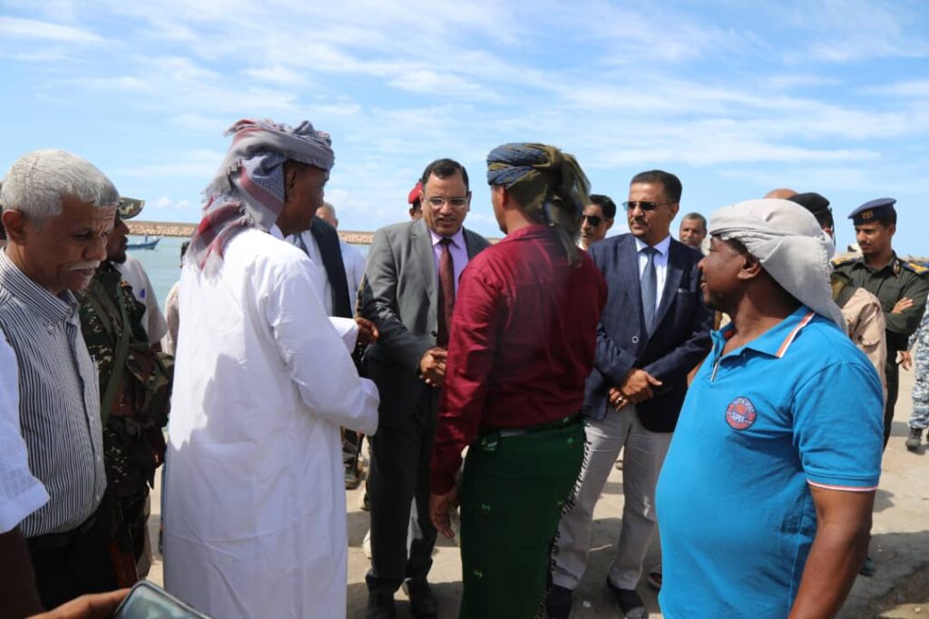 رافقهم خلال وضع حجر الأساس مدير عام ميناء الشحر صالح حسن العليي ، علي ناصر الحميري مدير الجمارك بميناء الشحر ، محمد عبدالله بن سحاق مدير هيئة المصائد بالشحر ، وعدد من الشخصيات الاجتماعية بالمديرية والصيادين .
