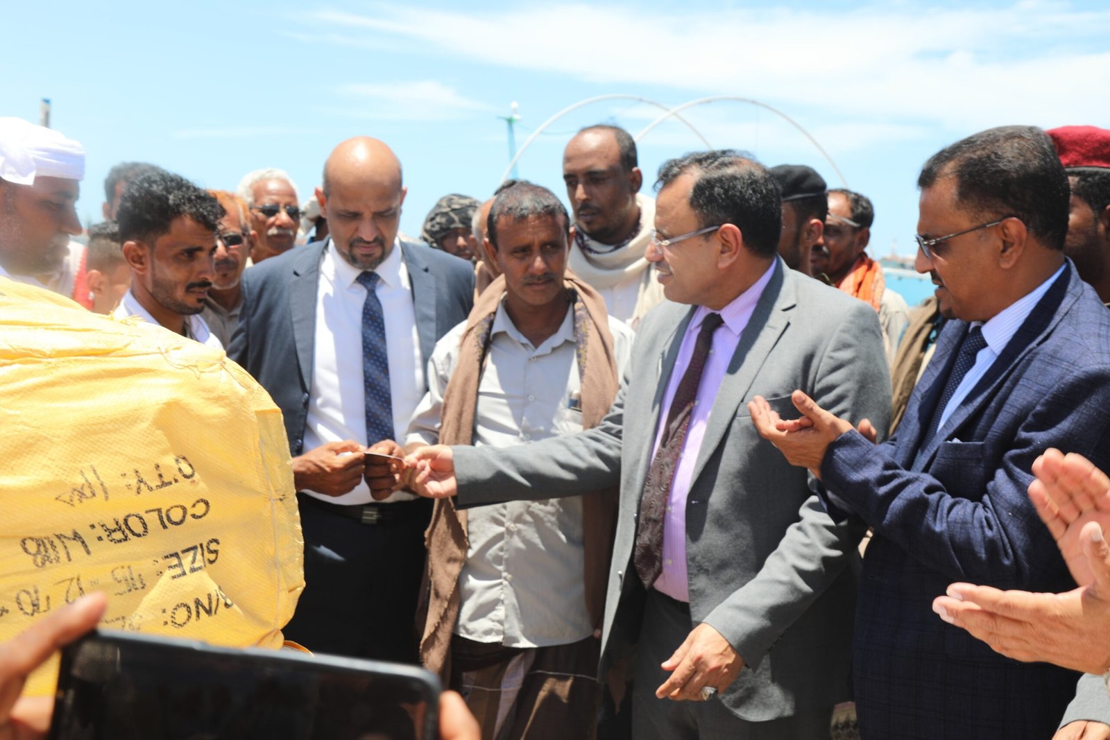 حضر التسليم مدير عام ميناء الشحر صالح حسن العليي ، وعلي ناصر الحميري مدير الجمارك بميناء الشحر ، ومحمد عبدالله بن سحاق مدير هيئة المصائد بالشحر .