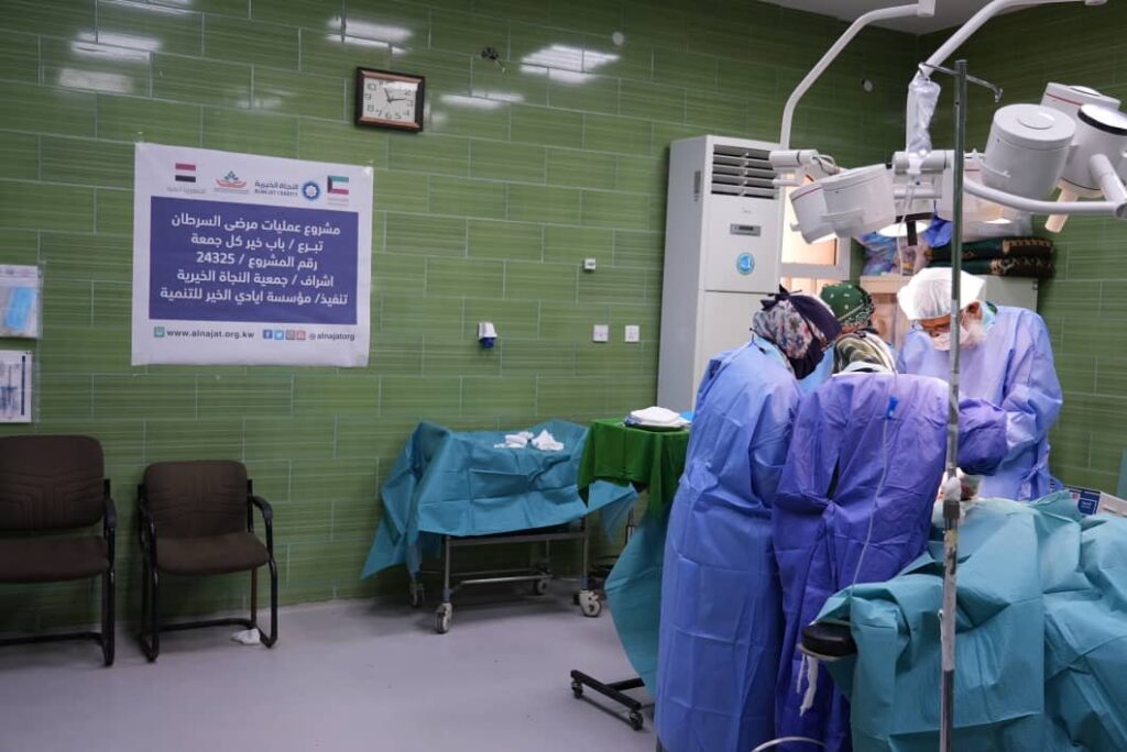 اجراء الفريق الطبي الاستشاري بقيادة الأستاذ الدكتور ماهر خالد السقاف استشاري أمراض النساء والولادة ورئيس وحدة الأورام الانثوية التناسلية بهيئة مستشفى أبن سيناء العام ، ورئيس قسم النساء والولادة بكلية الطب والعلوم الصحية بجامعة العرب ويضم كل من الدكتورة ذكرى الدقيل استشارية أمراض النساء والولادة والعقم ، و الدكتورة فيتنام المصلي استشارية أمراض النساء والولادة عملية جراحية لامرأة تبلغ من العمر 45 عاما في سرطان المبايض والرحم بهيئة مستشفى أبن سيناء وذلك ضمن مشروع عمليات مرضى السرطان الذي مؤسسة أيادي الخير للتنمية ، بإشراف جمعية النجاه الكويتية .