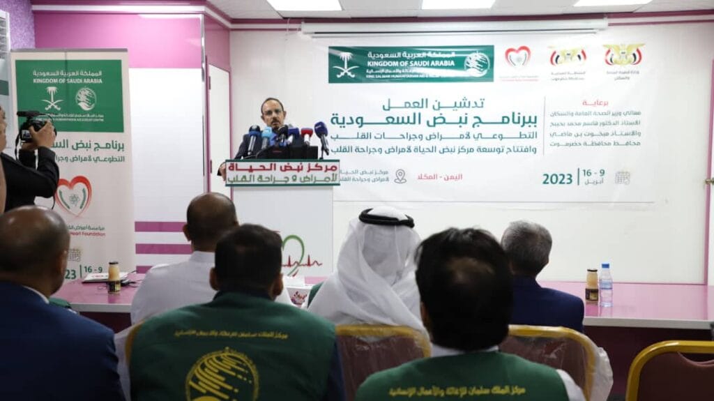 دشّـن وزير الصحة العامة والسكان الدكتور قاسم محمد بحيبح، ومحافظ حضرموت الأستاذ مبخوت مبارك بن ماضي، اليوم بمركز نبض الحياة لأمراض وجراحة القلب بمدينة المكلا محافظة حضرموت، برنامج نبض السعودية 2 التطوعي لأمراض وجراحات القلب “9-16 إبريل 2023م”، وافتتاح توسعة مركز نبض الحياة لامراض وجراحة القلب بالمكلا.