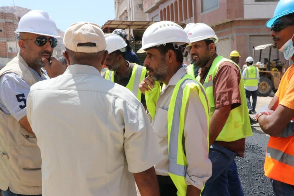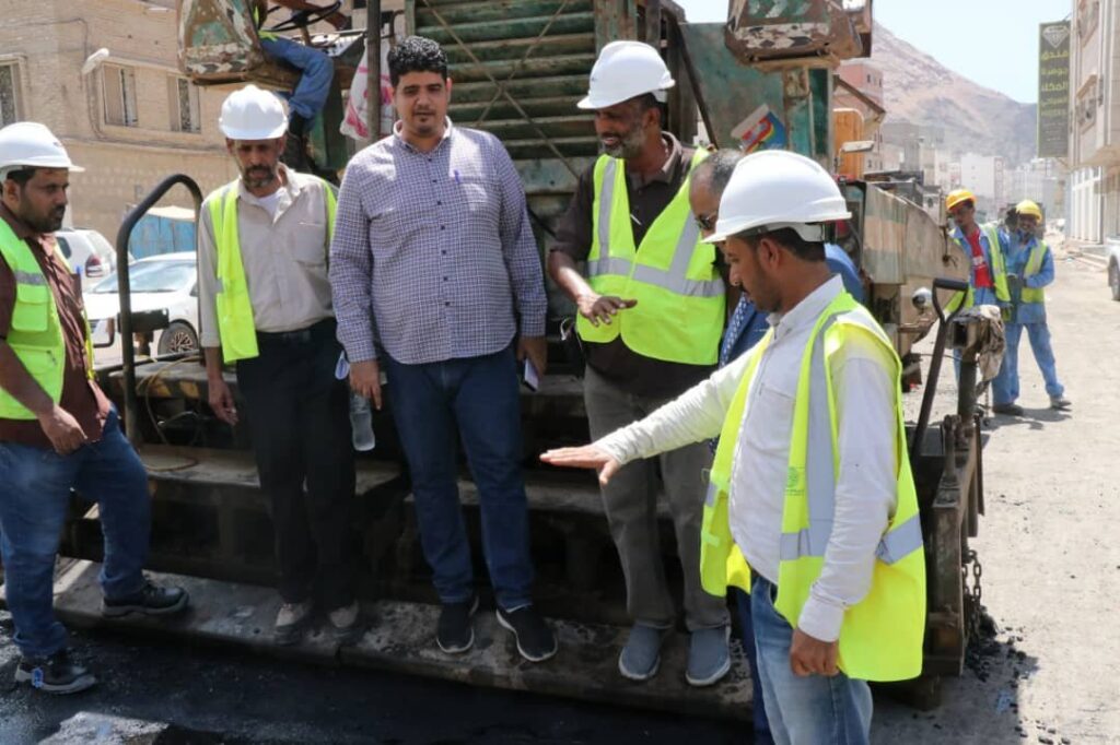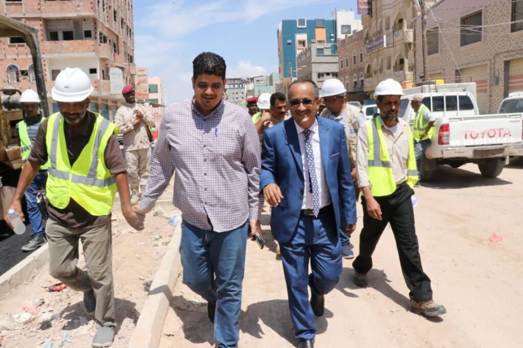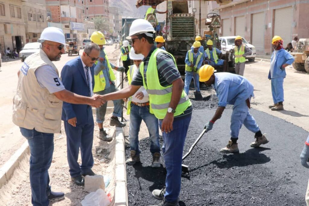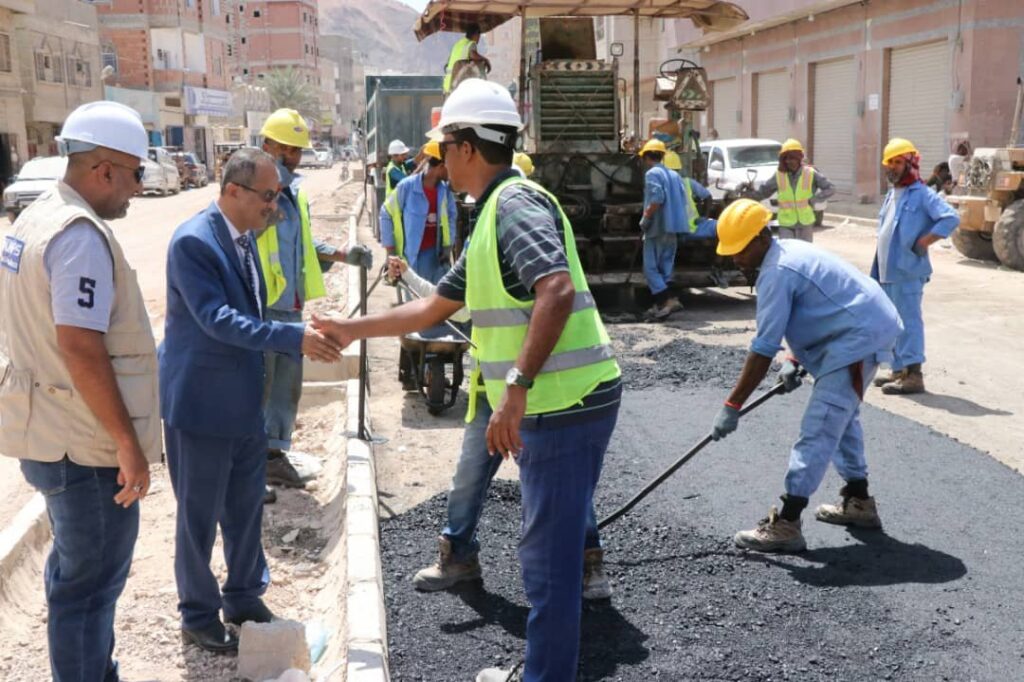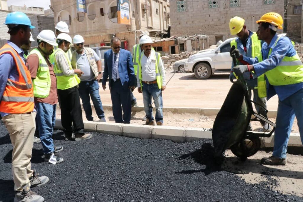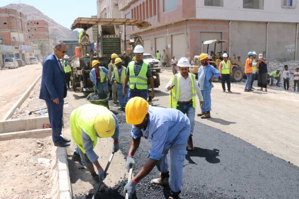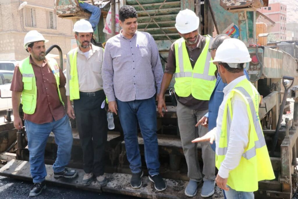 دشن وكيل محافظة حضرموت للشؤون الفنية المهندس أمين سعيد بارزيق بمعية مدير عام مكتب وزارة الأشغال بساحل حضرموت المهندس صالح العمري صباح اليوم الأحد أعمال السفلتة بمشروع صيانة وتأهيل شوارع حي العمال بمنطقة الشرج بمدينة المكلا .