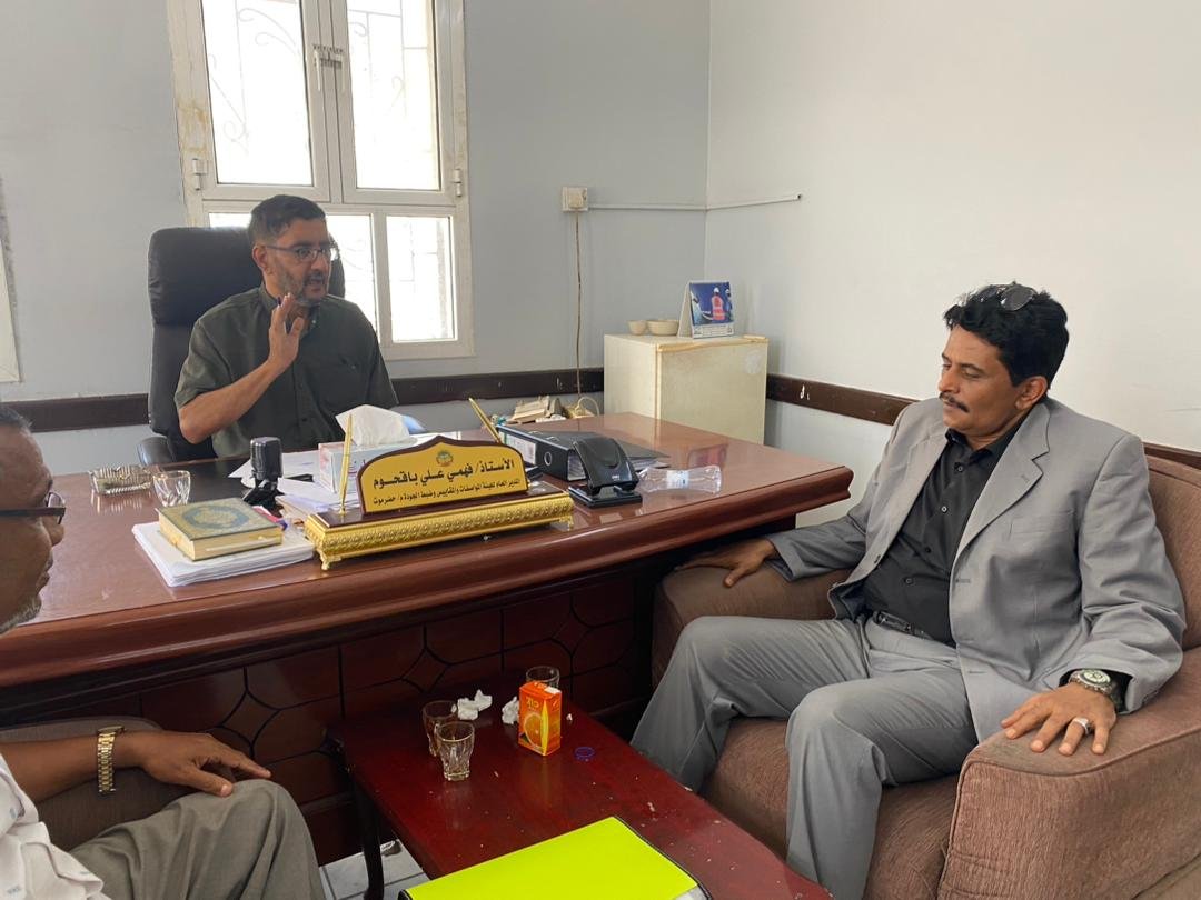 والتقى المدير العام للمكلا برفقة المدير العام لمكتب الواجبات الزكوية سالم بامحرز؛ المدير العام لجمرك ميناء المكلا حبشي نصيب والمدير العام للهيئة العامة للمواصفات والمقاييس فهمي باقحوم، ومدير صحة المواني التابع لمكتب وزارك الصحة الدكتور عمر باكرشوم وناقش معهم عددًا من الموضوعات المتصلة.