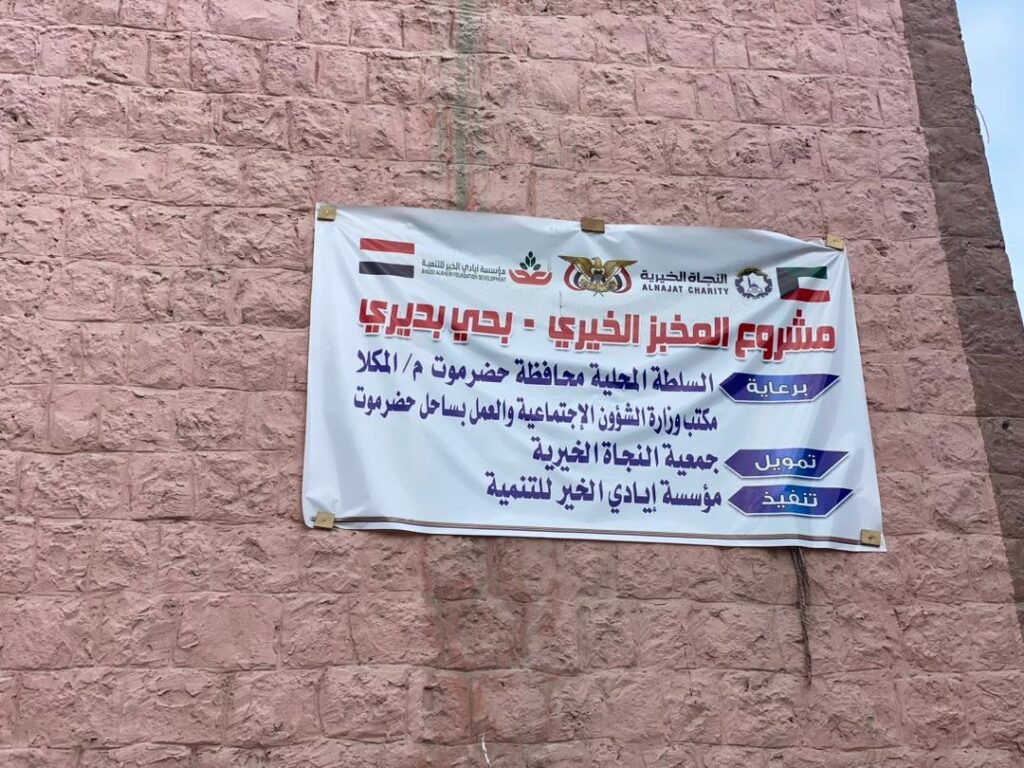 وضع المدير العام لمديرية مدينة المكلا العميد عبدالله سالم بايعشوت ومعه المدير العام لمكتب وزارة الشؤون الاجتماعية والعمل بساحل حضرموت أحمد باظروس حجر الأساس لإنشاء 2 مخابز خيرية بمدينة المكلا، تنفذه مؤسسة أيادي الخيرية للتنمية، وإشراف جمعية النجاة الخيرية، تبرع من المرحوم زين يوسف الزين.
