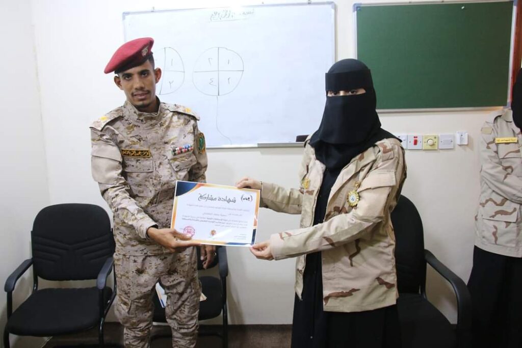 اختتمت، اليوم الإثنين، الدورة التدريبية الأولى حول الإسعافات الأولية لمنتسبي سرية الشهيدة منار، التي نظمها فريق التوجيه المعنوي بالقيادة والسيطرة، بالتعاون مع المركز الطبي بمحور لواء النخبة الحضرمي.