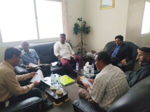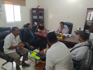 حيث ناقش مع مدير عام مكتب الصناعة والتجارة المهندس أحمد حسن باعوم أوضاع الإرتفاع في أسعار السلع الغذائية والإستهلاكية وأسعار بيع الأسماك بالإضافة إلى أسعار الأدوية و المستلزمات الطبية بالمديرية وسبل وضع المعالجات المناسبة للحد من التلاعب بالأسعار من خلال تفعيل الدور الرقابي.