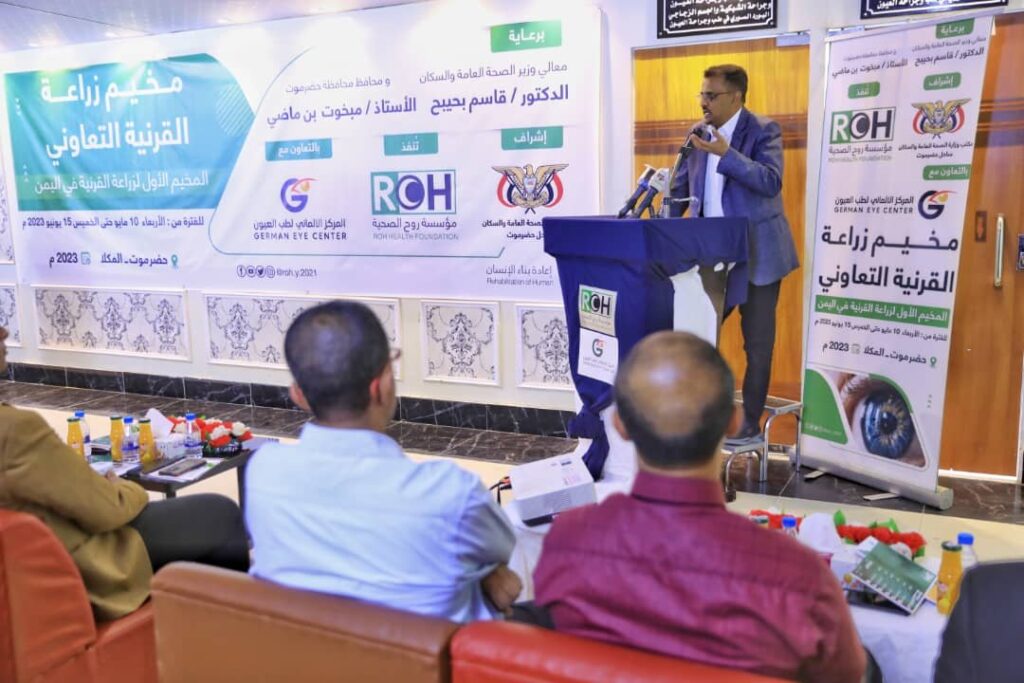 دشن الأمين العام للمجلس المحلي بمحافظة حضرموت الأستاذ صالح عبود العمقي اليوم بالمكلّا ، مخيم زراعة القرنية التعاوني، “المخيم الأول لزراعة القرنية في اليمن ” للفترة من 10 مايو حتى 15 من يونيو من هذا الشهر، الذي يأتي برعاية كريمة من وزير الصحة والسكان الدكتور قاسم بحيبح ومحافظ محافظة حضرموت الأستاذ مبخوت بن ماضي، تحت إشراف مكتب وزارة الصحة والسكان بساحل حضرموت وبتنفيذ من مؤسسة روح الصحية، بالتعاون مع المركز الالماني لطب العيون