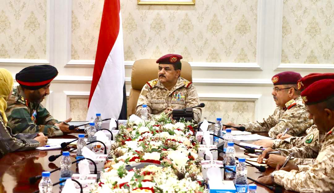 واكد وزير الدفاع، على ضرورة تقديم الدعم اللازم للسلطة الشرعية ممثلة بمجلس القيادة الرئاسي لمواجهة مليشيا الإرهاب الحوثية بما يعزز قدرات القوات المسلحة اليمنية ويمكنها من ردع وهزيمة المشروع السلالي الإرهابي المدعوم ايرانيا.