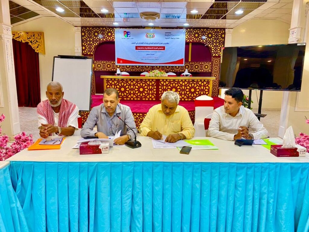 بحثت اللجنة الاستشارية بمحافظة حضرموت لتعزيز الحكم المحلي وبناء السلام الشامل في اليمن، واقع التعليم الفني والتدريب المهني والتربية والتعليم بالإضافة إلى جمعيات ذوي الإعاقة بوادي وصحراء حضرموت.