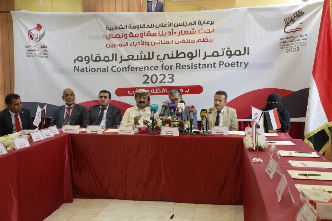 نظم ملتقى الفنانين والأدباء اليمنيين، اليوم بمدينة مارب، المؤتمر الوطني للشعر المقاوم بمشاركة نخبة من الشعراء والأدباء.