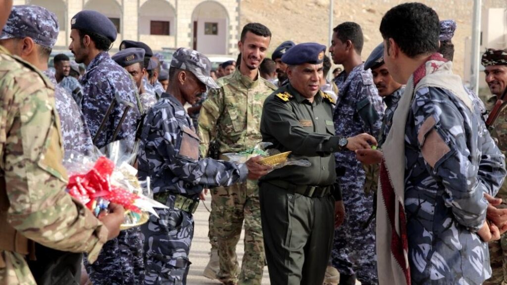 وخلال الزيارات التفقدية إلى قوات شرطة الدوريات وأمن الطرق، وإدارات أمن المكلا والبحث الجنائي ومكافحة المخدرات، ومصلحة الدفاع المدني، ونقطة بلفقيه الواقعة أمام إدارة الأمن العام، نقل العميد المنهالي تهاني وتبريكات وزير الداخلية اللواء الركن إبراهيم علي حيدان، ومحافظ حضرموت رئيس اللجنة الأمنية الأستاذ مبخوت مبارك بن ماضي، إلى الضباط وصف الضباط وأفراد الأمن والشرطة بمناسبة عيد الأضحى المبارك .